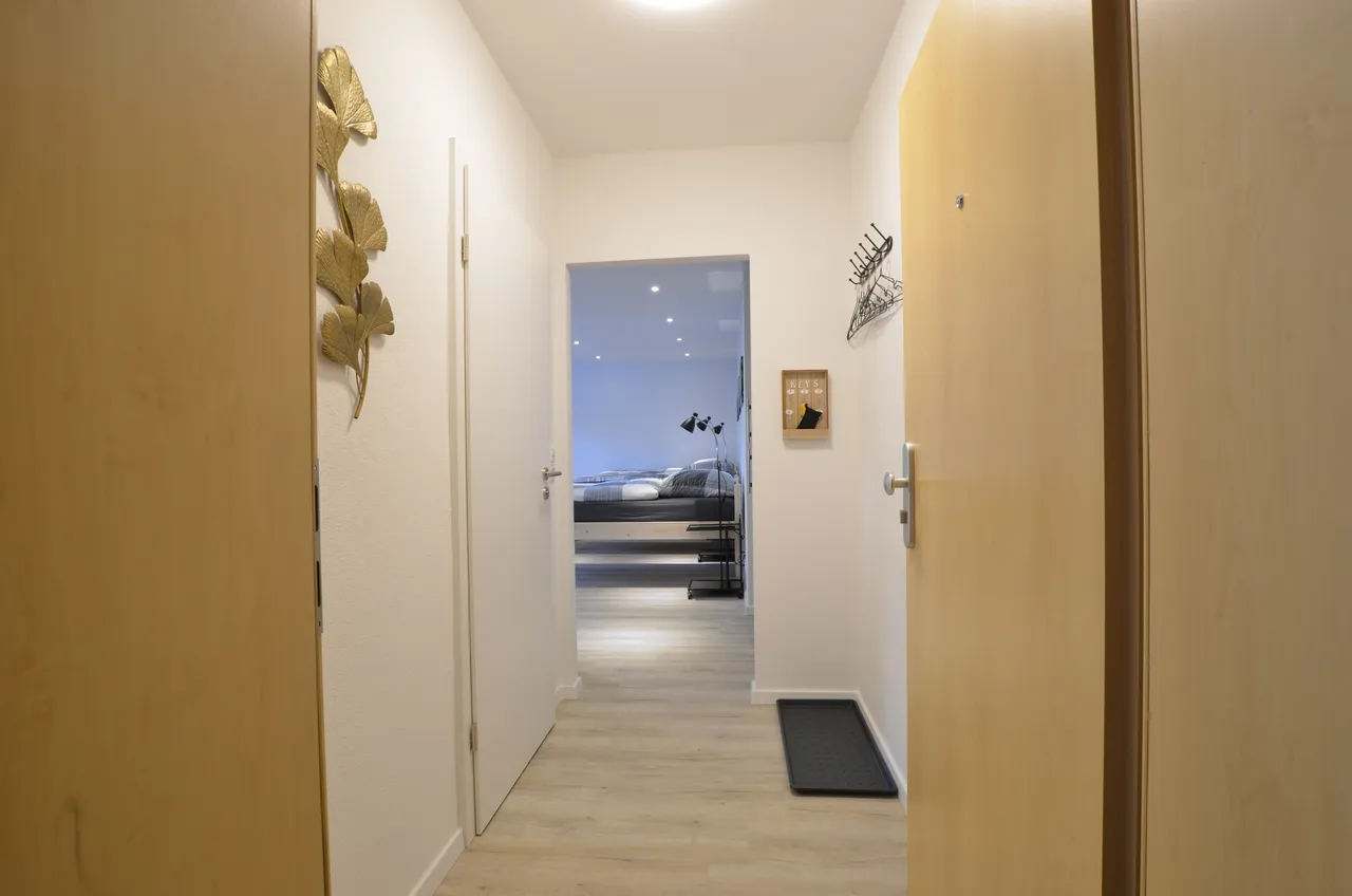Im Flur finden Sie eine Garderobe, eine Schuhablage sowie einen Schlüsselkasten
