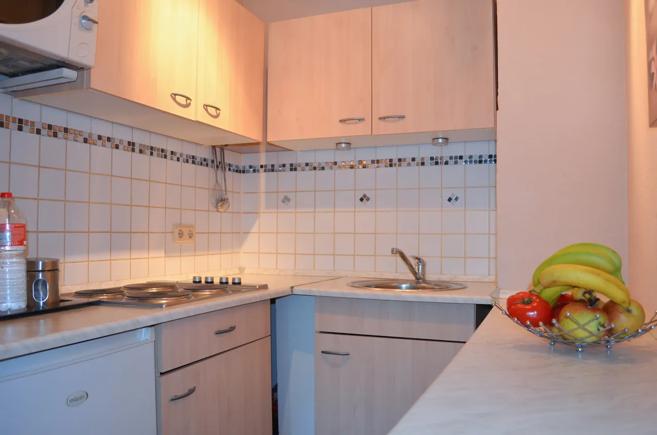 Das Bad ist gefliest, Flur, Küche, Wohn- und Schlafraum sind mit einem hochwertigen Laminat ausgestattet.