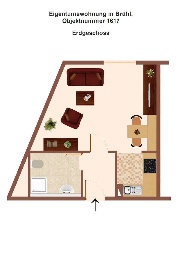Das schicke Domizil verfügt über eine Wohnfläche von ca. 31 qm, aufgeteilt in einen großzügigen Wohn- und Schlafraum mit versetztem Küchenbereich, ein Duschbad und einen Flur.