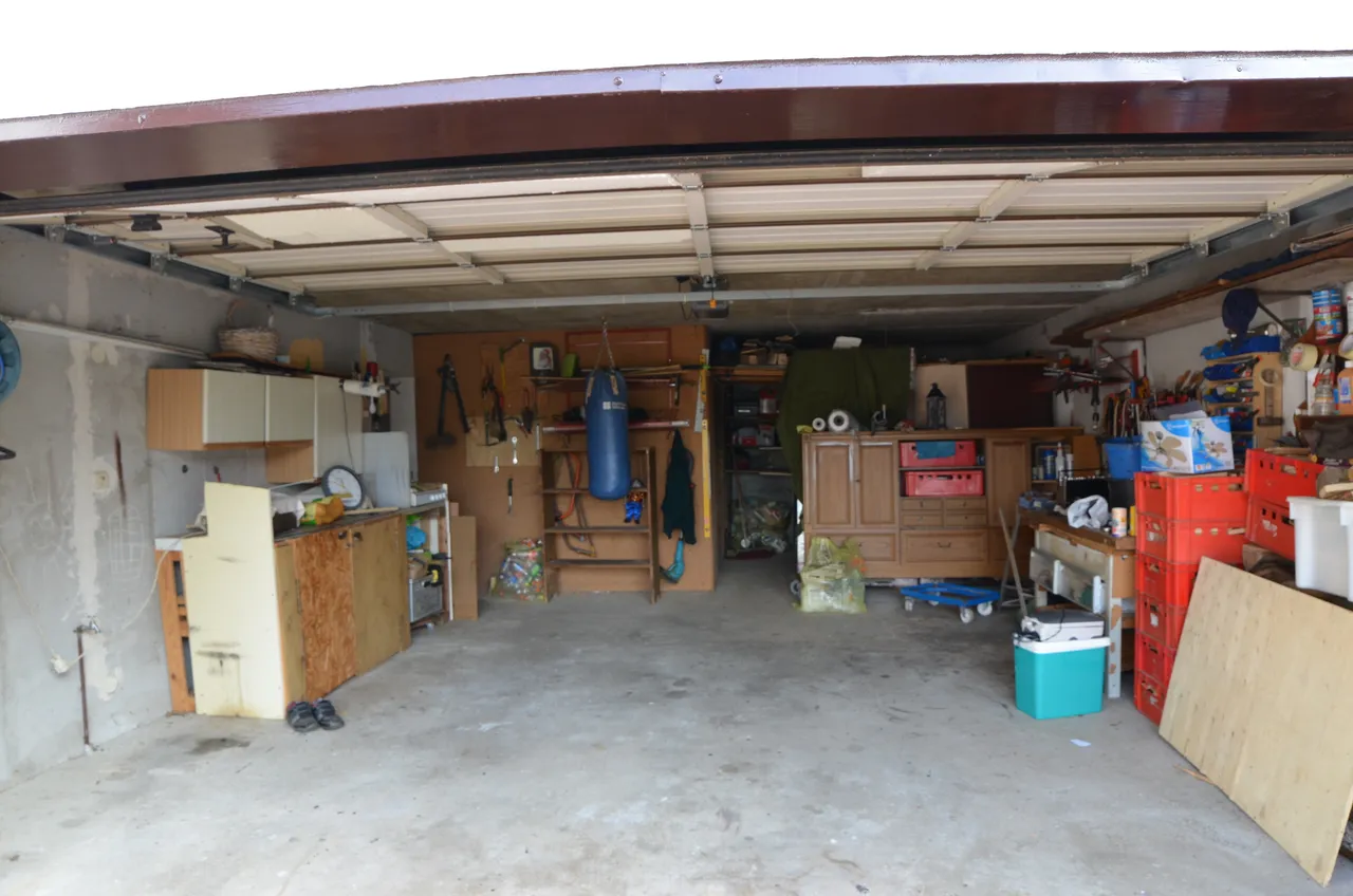 Die große Doppelgarage kann neben den beiden Parkplätzen zusätzlich als Werkstatt genutzt werden.