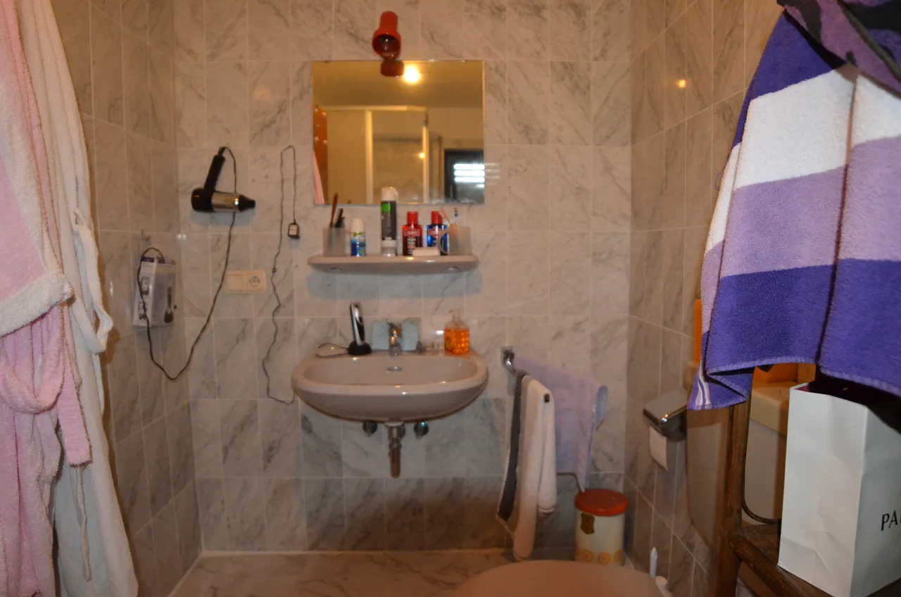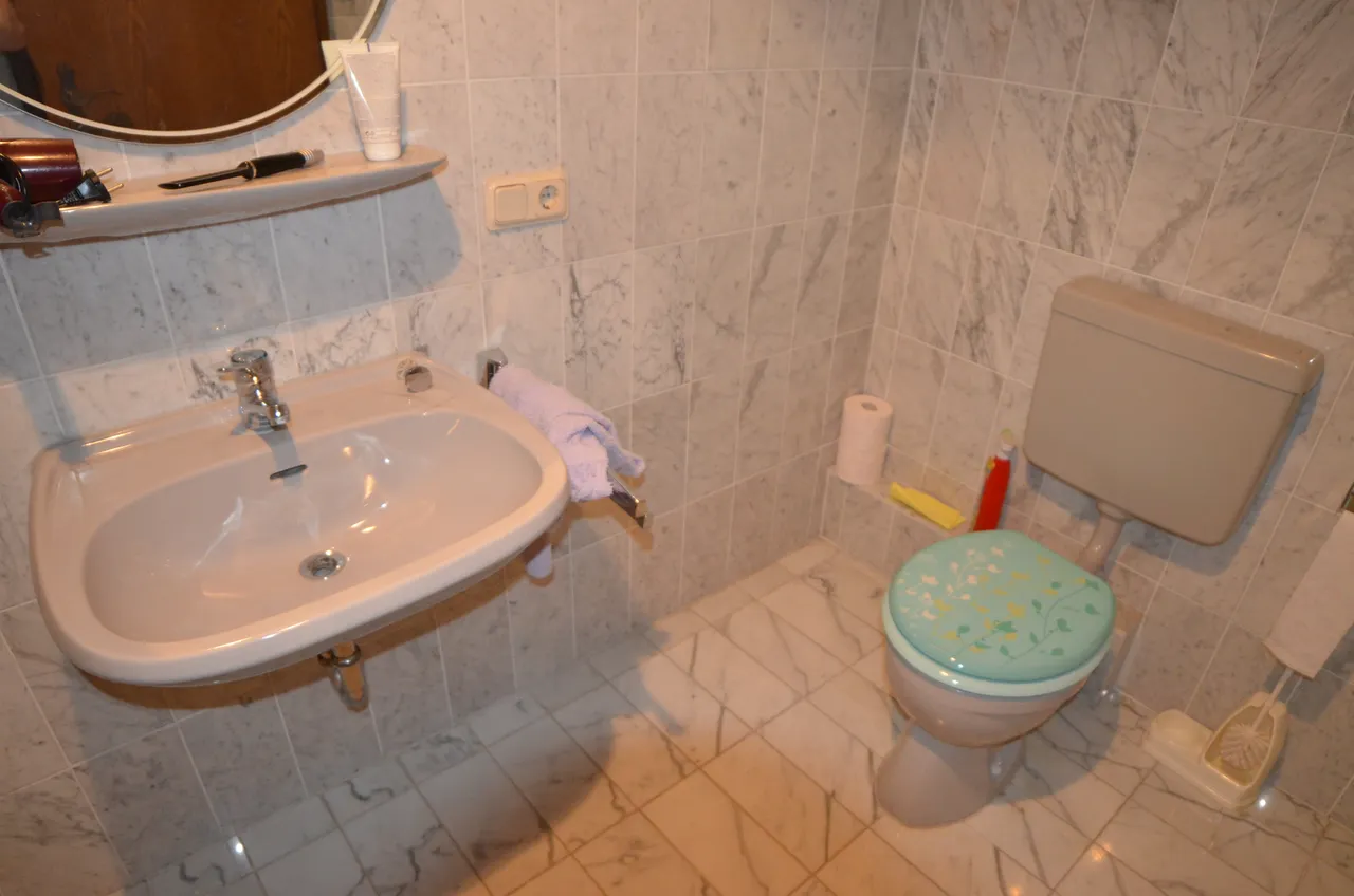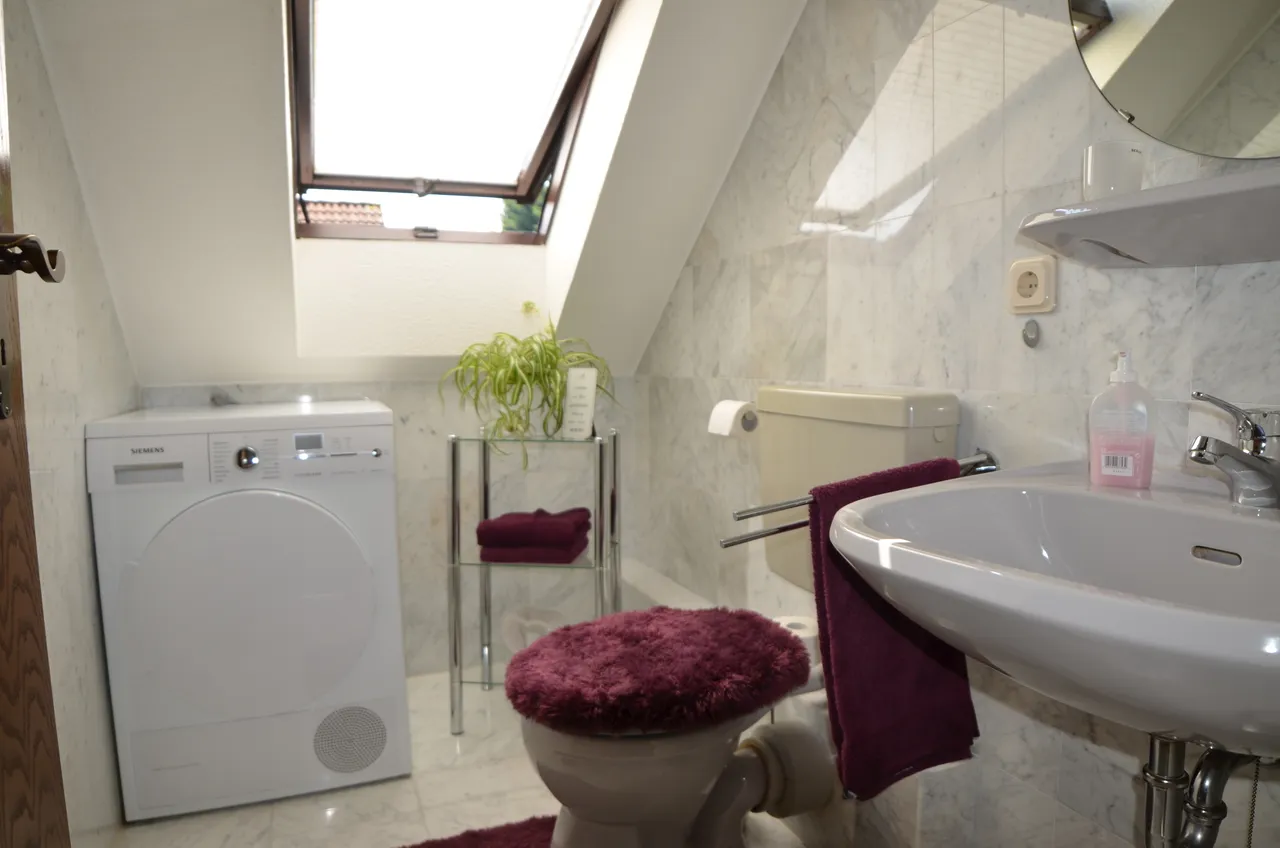 Die Bäder sind voll gefliest, der Boden ist mit einem edlen weißen Marmorbelag versehen.
