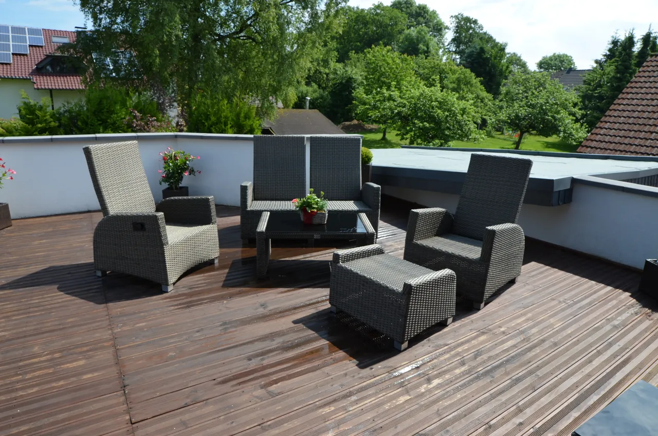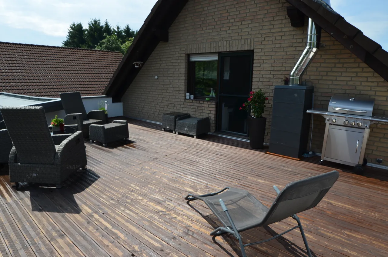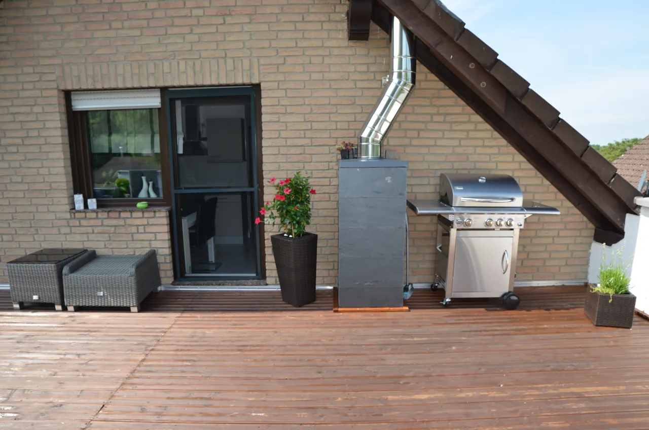 Von hier aus gelangen Sie direkt auf den eindrucksvollen und wunderschönen Balkon, der nicht nur an lauen Sommerabenden zum Grillen, Feiern oder Relaxen einlädt.