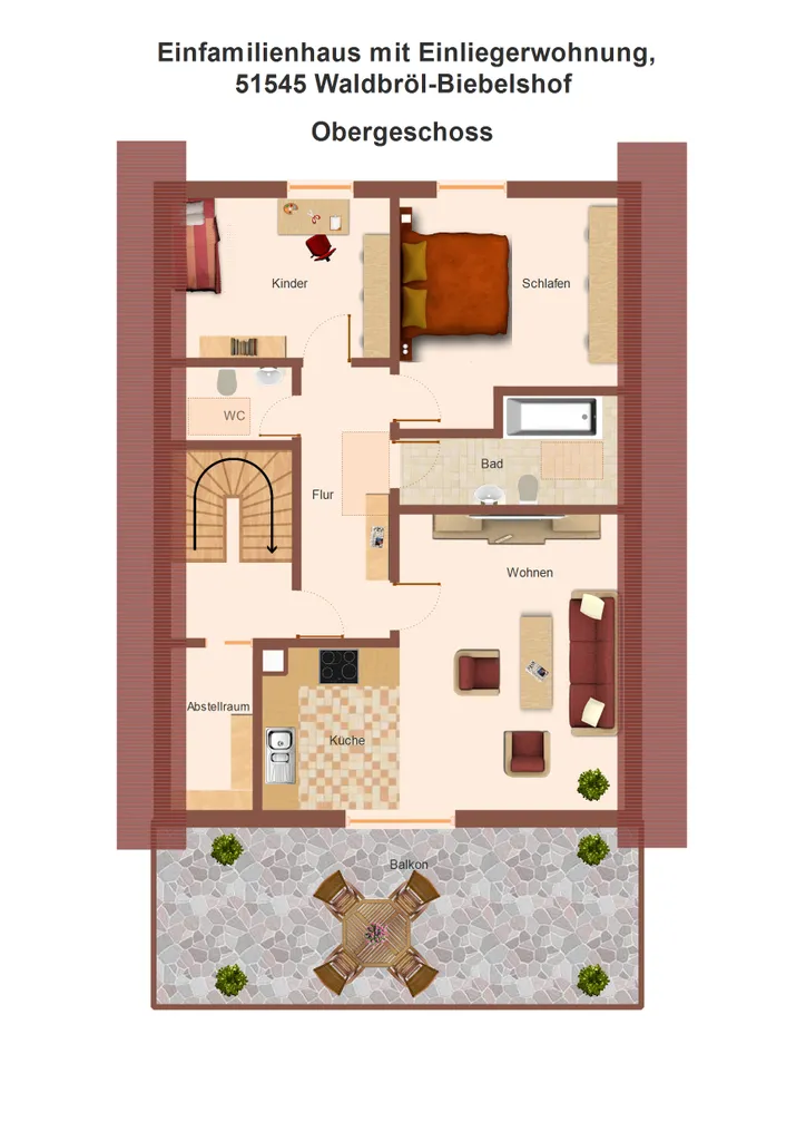 Das angenehm geschnittene Grundstück mit kleinem Garten, sonnenverwöhnter Terrasse und wunderschönem Balkon im Obergeschoss hat eine optimale und pflegeleichte Größe.