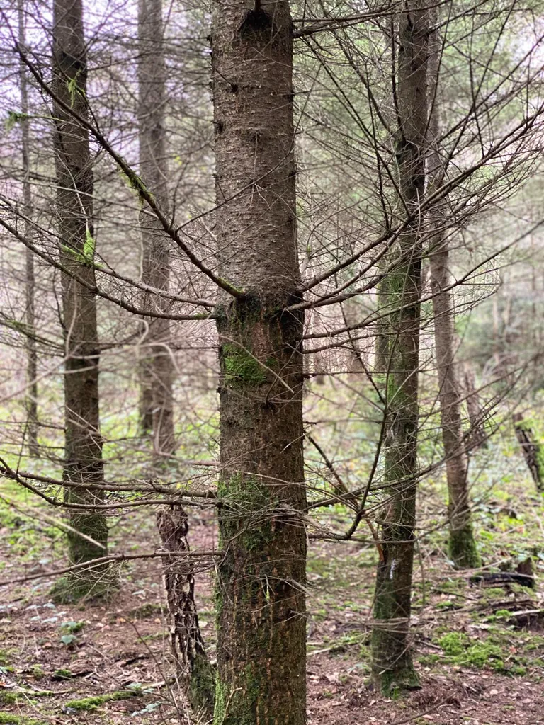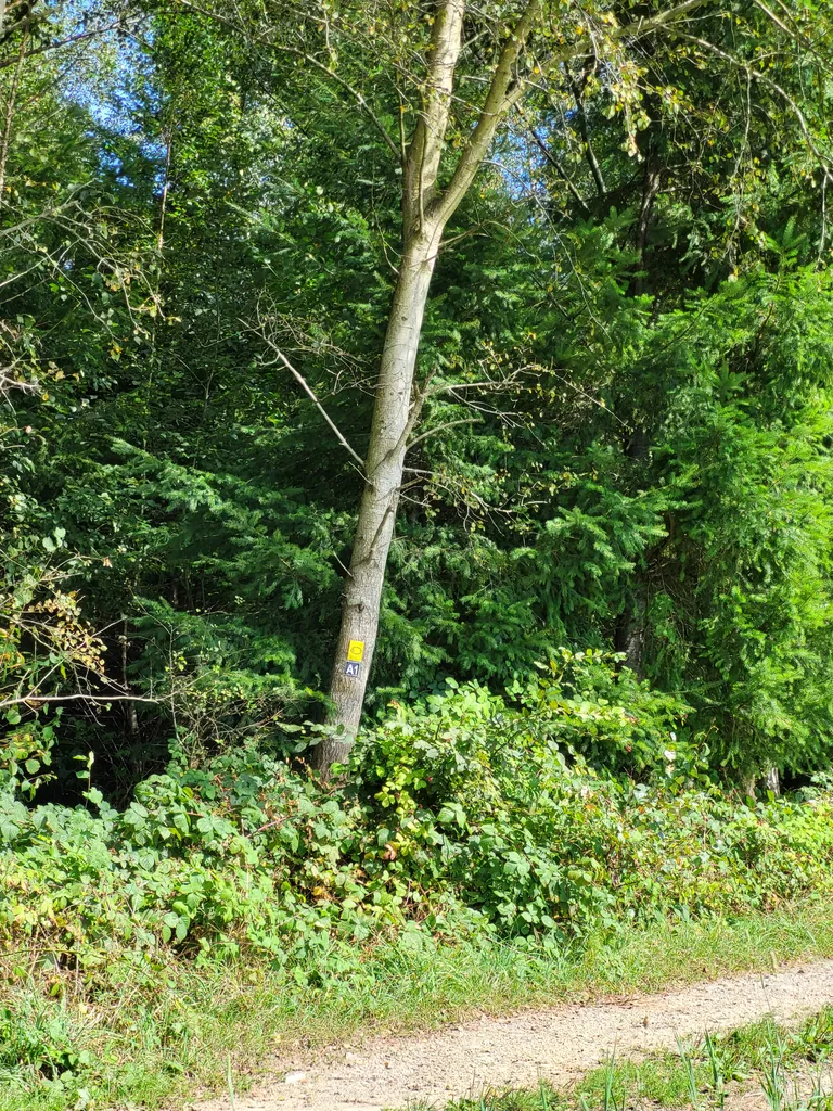 Es handelt sich um eine Mischwaldfläche, die Baumarten sind im Wesentlichen: