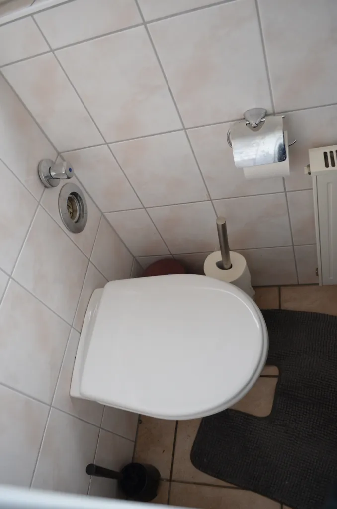 Duschbad und WC sind mit hellen, pflegeleichten Fliesen und die anderen Räume komplett mit Laminat ausgestattet.