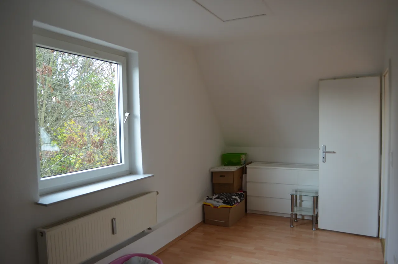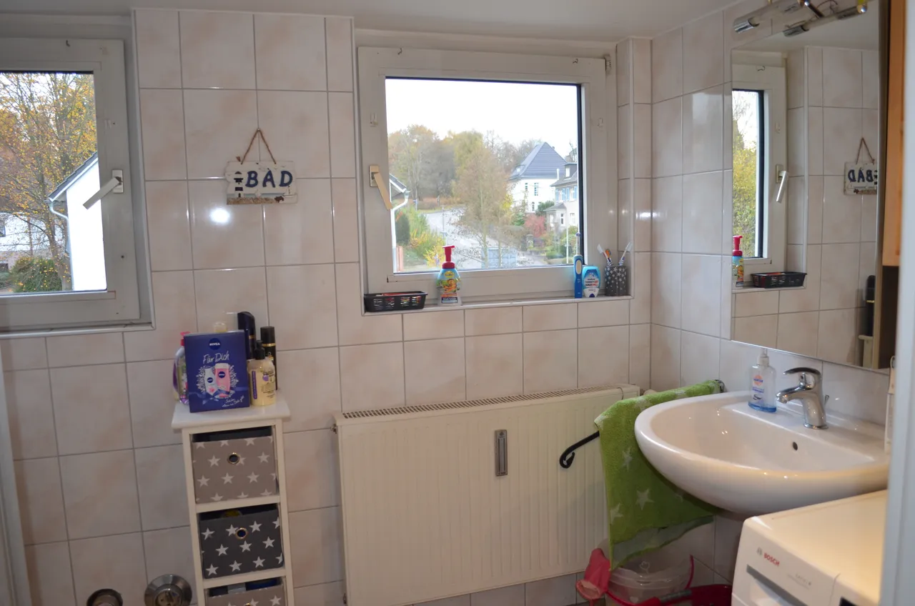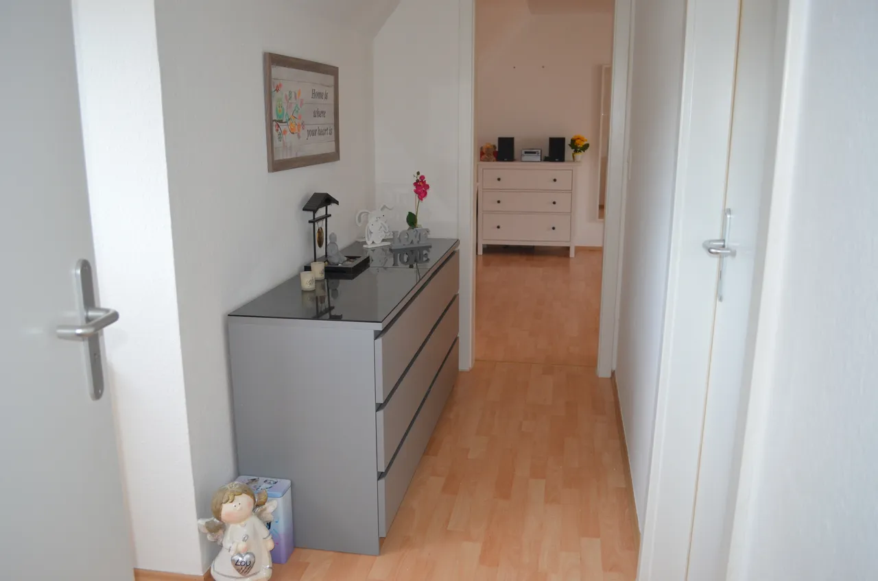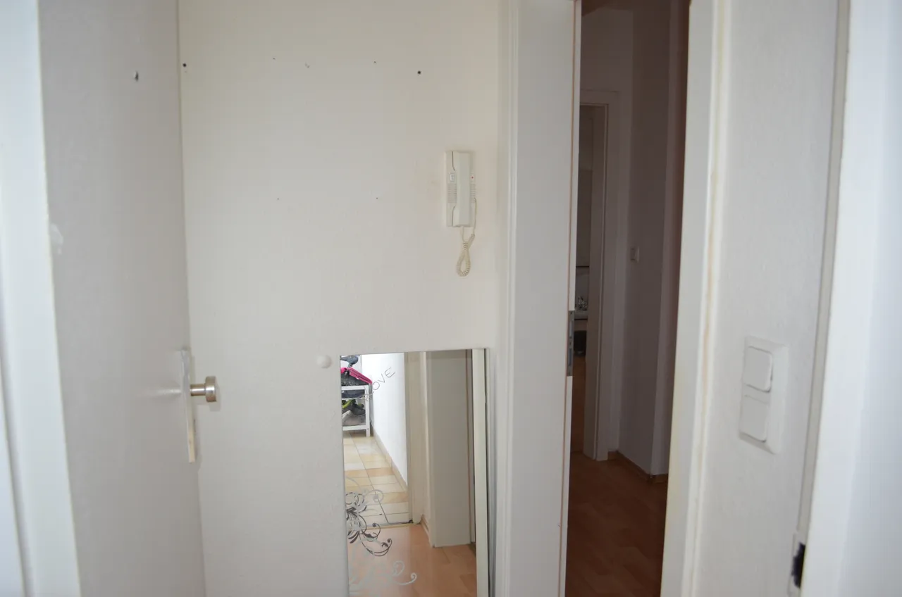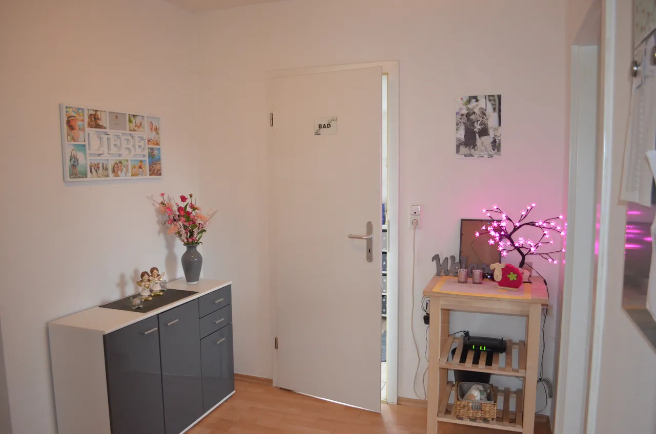 Die Wohnung ist aufgeteilt in 4 Zimmer, Küche, Diele, Abstellkammer, WC sowie Tageslicht-Bad mit fast ebenerdiger Dusche.
