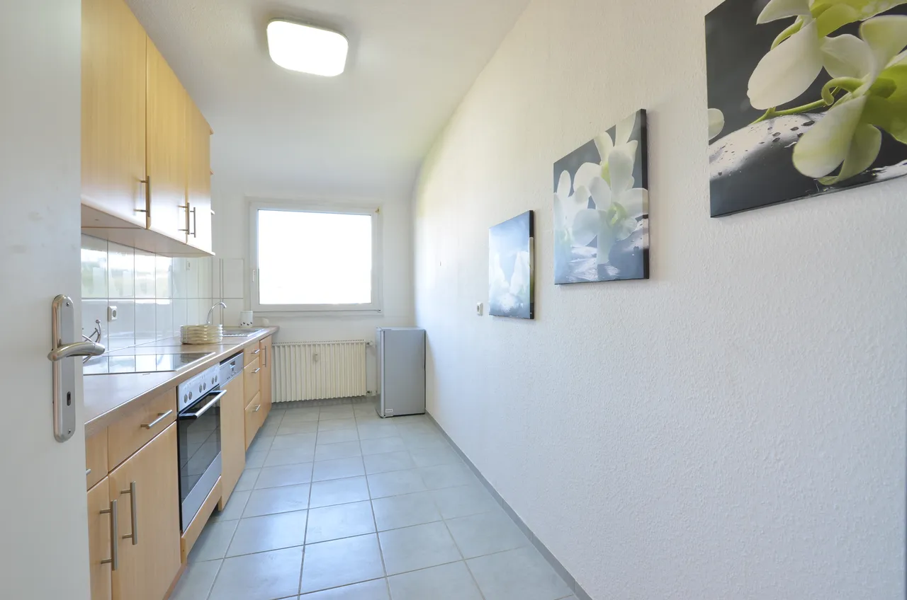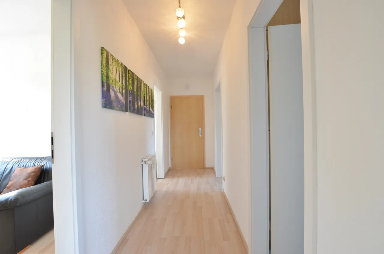 Die helle Wohnung verfügt über eine Wohnfläche von ca. 70 m², aufgeteilt in 3 Zimmer, Küche, Flur sowie Tageslicht-Bad mit Badewanne.
