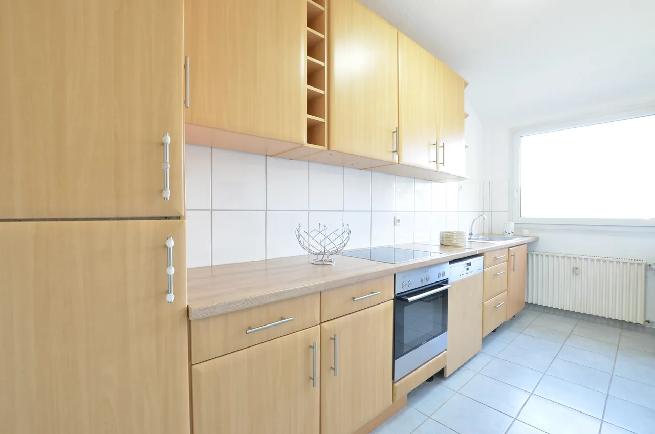 Bereits im Mietpreis enthalten ist in dieser Wohnung eine komplette Küche bestehend aus Kühlschrank, Einbauspüle, Miele Geschirrspülmaschine, Siemens Ofen mit Induktionskochfeld, Arbeitsfläche, Küchenunterschränke, teils mit Schubladen sowie Hängeschränke.
