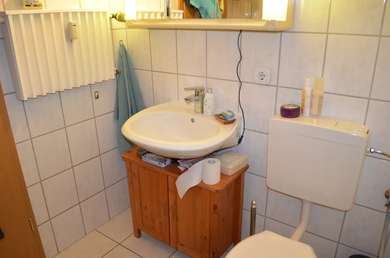Die Warmwasseraufbereitung im Bad erfolgt mittels Durchlauferhitzer.